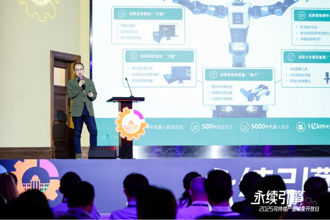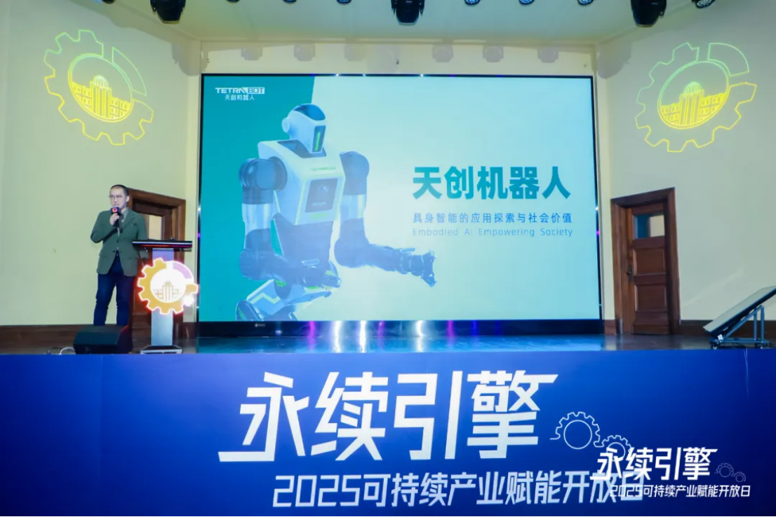 作为具身智能产业创新力量的代表,天创机器人集团天机智能团队受邀参会,并在产业赋能主论坛上做主题演讲,与现场的嘉宾与合作伙伴们分享了公司关于具身智能技术长期探索的历程与其产业应用上的一系列思考。