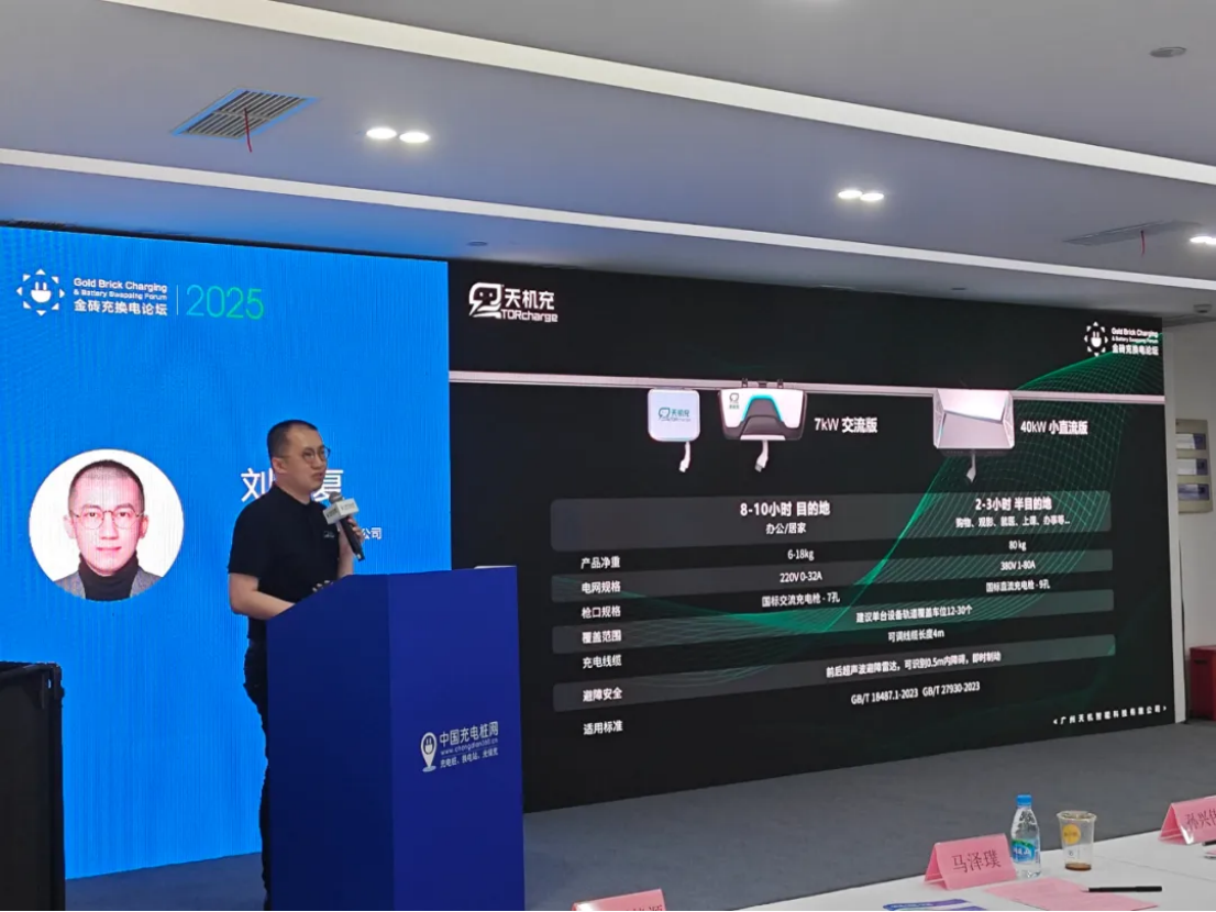 移动充电机器人发展论坛,解码行业破局之道在“移动充电机器人发展论坛”上的《移动共享充电机器人机遇与挑战》主题演讲环节中,天机智能阐述了当前的AI与机器人技术对充电行业变革方向的赋能:目的地充电日趋主流:随着私家车主占比提升,电车用户更倾向于在住宅、办公场所等固定场景完成补能,而非“加油站式”的集中式充电站。移动充电形态最符合目的地充电“停哪都能充、充完不挪车”的习惯需求。“多车一桩”效率革命:通过挂轨机器人系统100%释放地面空间,节约90%电容,单机可覆盖12-30车位,破解老旧小区等载体物理空间紧张、电力配套不足等难题。安全运维能力升级:集成智能巡检云台+用电安全超前预警系统,以AI驱动的模型能力实时监测场站态势和车辆状况并生成分析预警,已获多地应急管理部门专家高度认可。