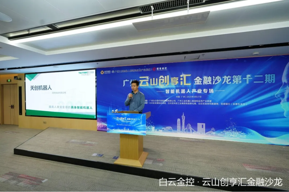 4月17日,“云山创享汇”金融沙龙第十二期——智能机器人产业专场在白云国际会议中心举办。天机智能作为白云区机器人赛道代表受邀参会,在论坛中分享了公司从特种巡检赛道向民用安全领域持续渗透的探索经历,并重点介绍了“天机充”移动充电机器人方案。该产品基于母公司天创机器人在特种智能运维领域的技术积累,创新性地将充电模块与轨道移动结合,提供一种为新能源汽车共享补能的新方案。